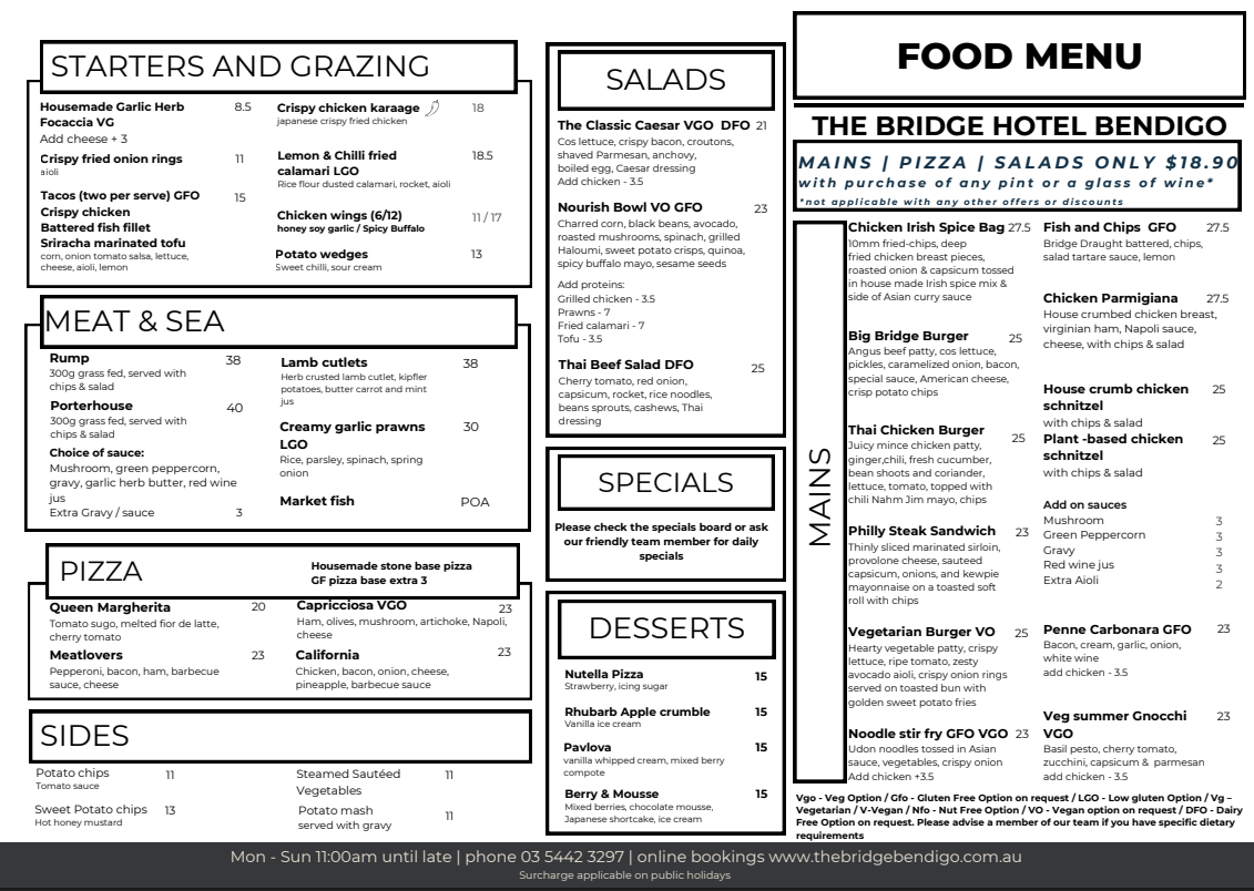 Weekly Specials are not available on Public Holidays & School Holidays